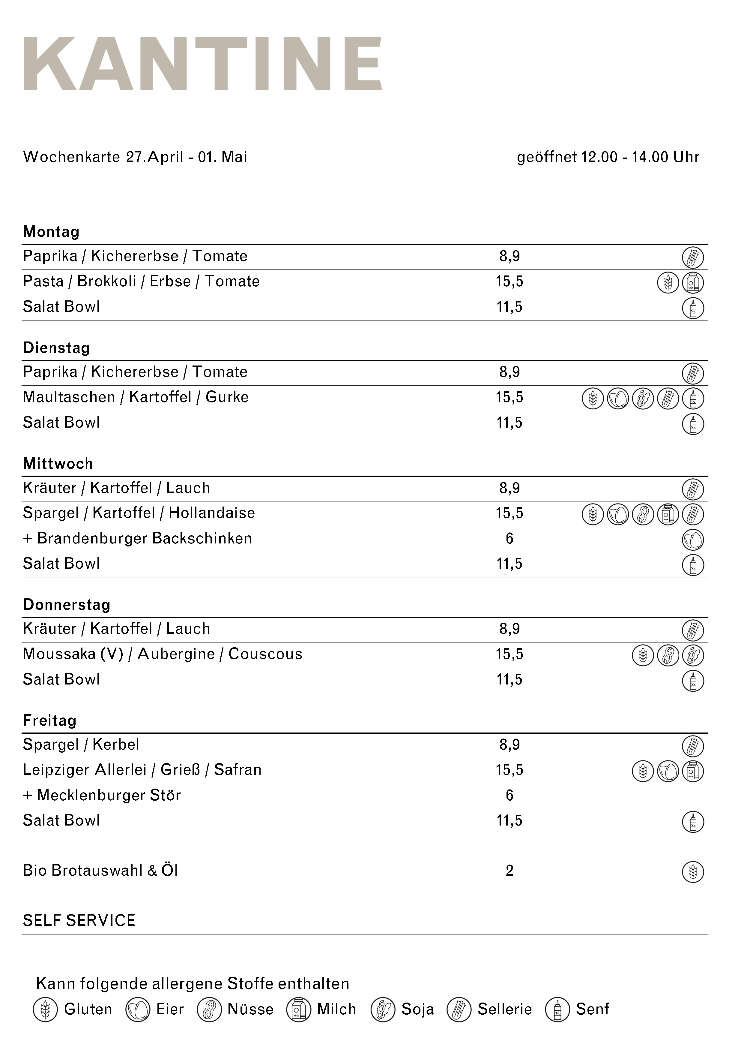 Wochenkarte 20. – 24. April 2026